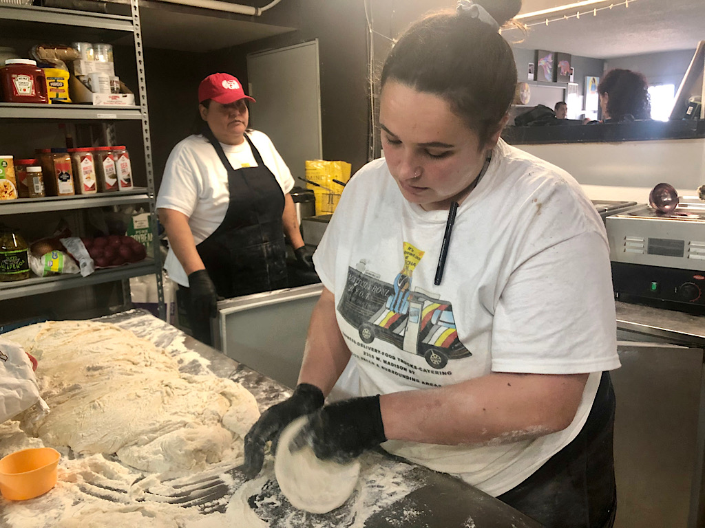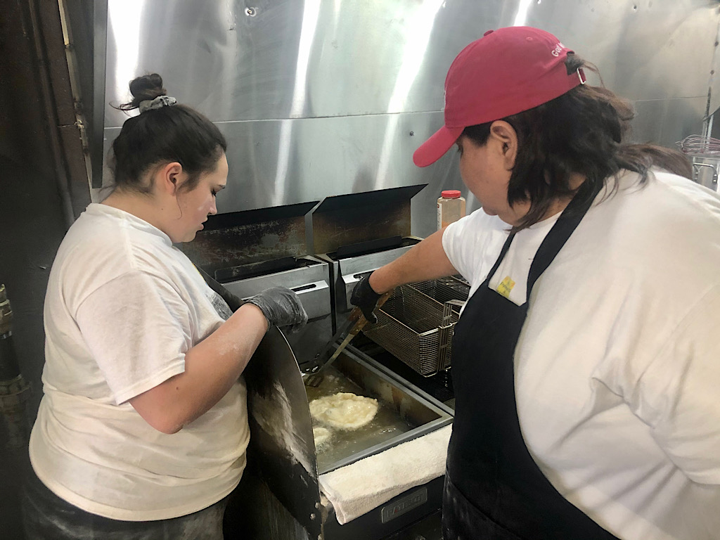 After that, the line formed at the Indian taco bar, while the crew in the kitchen made fry bread for each order.