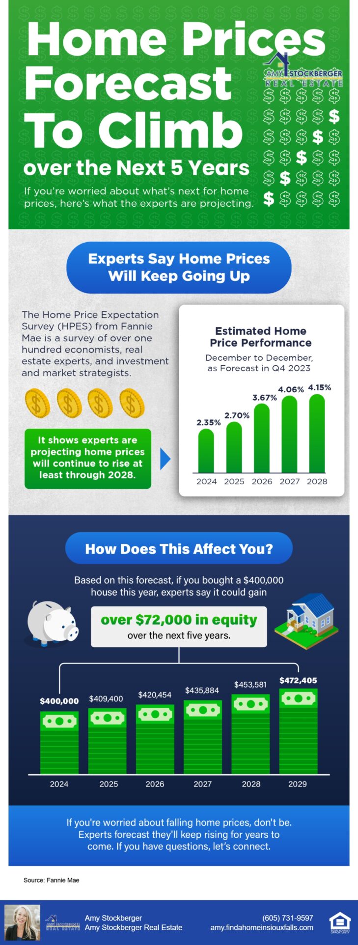 The Sioux Falls real estate market is bustling with opportunity. Whether you’re looking to buy, sell or invest, the current conditions are promising. At Amy Stockberger Real Estate, we’re more than just agents — we’re your partners in building big, juicy legacies through smart real estate decisions. With our unique Lifetime Home Support model and innovative value propositions, we’re here to guide you every step of the way.