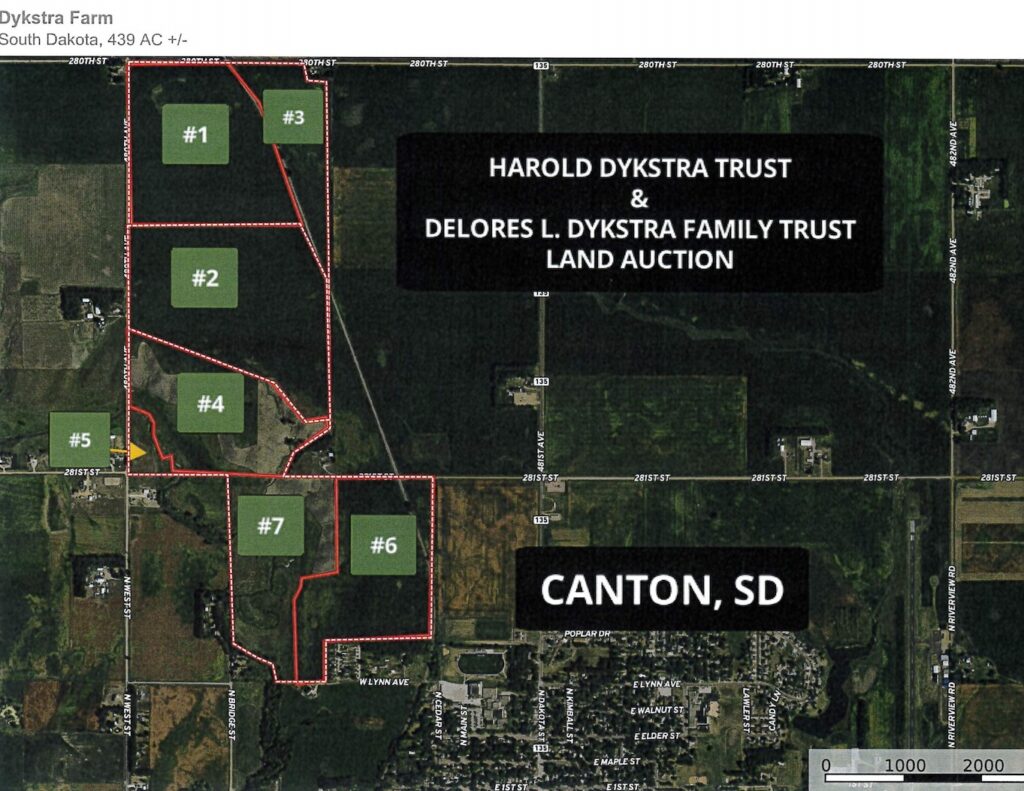 “This is a very unique opportunity as large tracts of adjoining land such as these are not often available and especially on the edge of Canton, South Dakota! If a farmer, investor or developer is looking for a large tract of land in one location, this is a rare opportunity to purchase just that.”