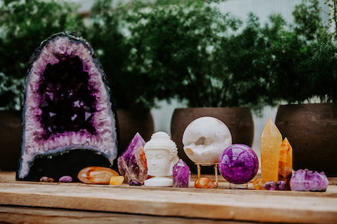 Inventory include crystals, sage products, decor, home, beauty and wellness products, essential oils, pendulums, salt lamps, dreamcatchers, jewelry and gifts.