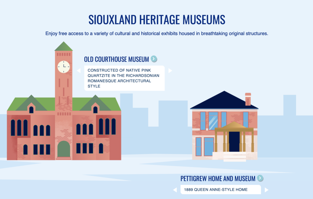 The addition of animation also made the standard infographics more engaging and better showcase all there is do and explore in Sioux Falls.