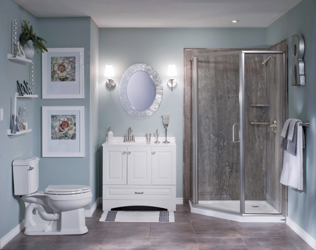 Re-Bath offers a full line of products and finishes from showers and bathtubs to toilets and cabinets and does all the remodeling work.