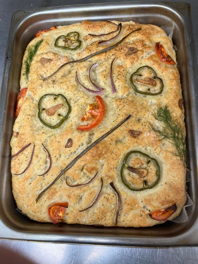 She’s baking focaccia for some of her sandwiches.