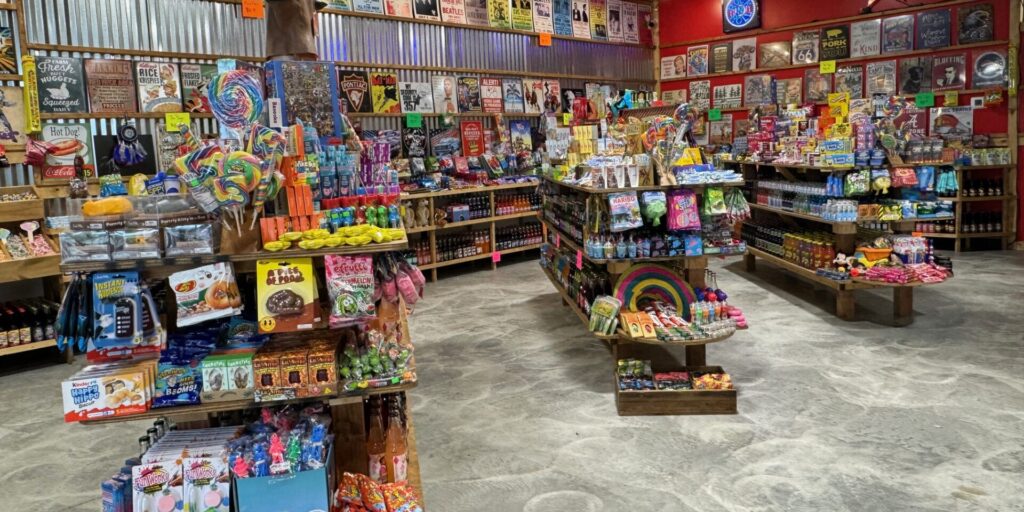 Among the massive selection of candies are 100 varieties of taffy.