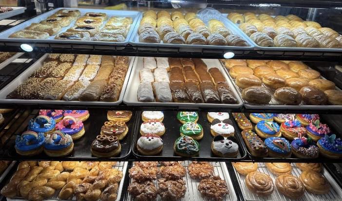 Walking into Sweet Scoops, customers are met with an array of options. According to Springman, mornings are the most popular time to order coffee and doughnuts. The shop serves Caribou Coffee — from lattes to blended drinks — as well as daily fresh rolls and doughnuts from Mr. Donuts.