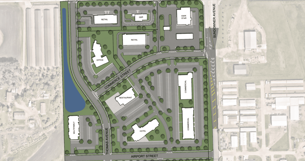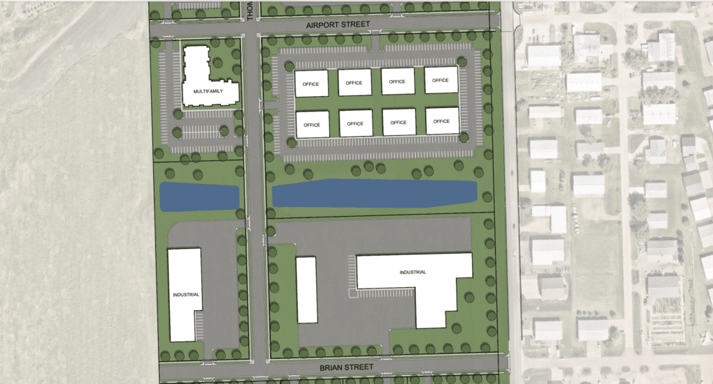“While still in the design phase, the goal is to create a cohesive development that incorporates a variety of uses, benefiting owners and tenants within the park as well as the community of Tea,” Neises said.