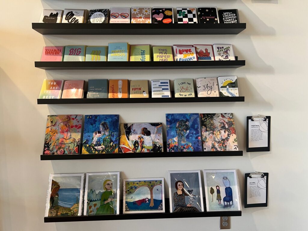The retail side of the business features about a half-dozen categories of merchandise, from bath and beauty to stickers and pins, digital prints, original prints and ways to display arts, as well as candles, jewelry, games and other gift items.