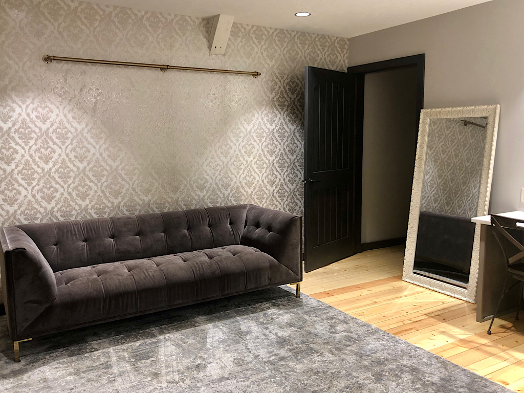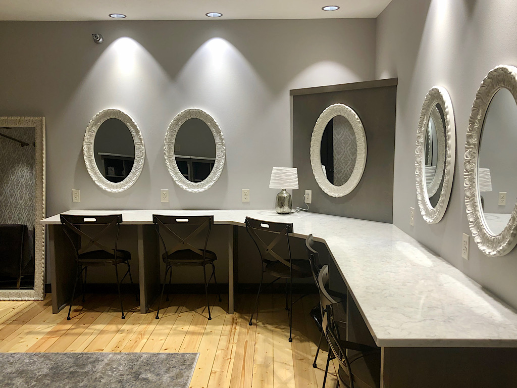 The loft includes the bridal suite and a smaller seating area overlooking the main floor.