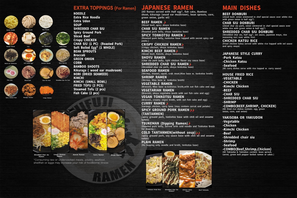 The menu includes other Japanese dishes such as donburi, katsu, curry, fried rice, yakisoba and yakiudon.