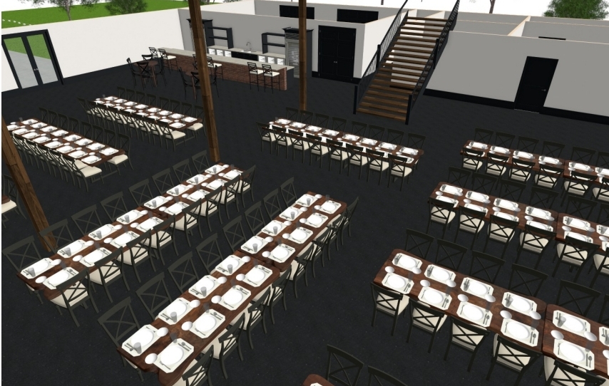 When construction is complete, the Prosper Country Warehouse & Event Hall will be a 9,500-square-foot facility capable of hosting up to 375 people. The space is customizable and features amenities such as a bridal suite, groom’s den, kitchen, games, inflatables and a large patio in the back facing open fields.