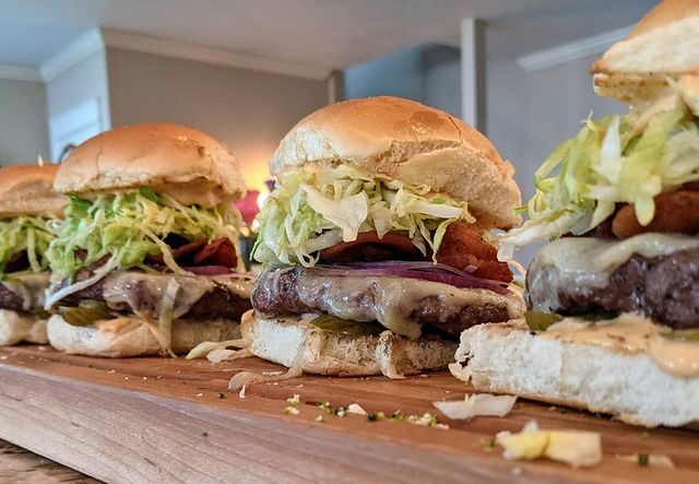 For the BBQ Bacon Cheeseburger, Lundie makes the barbecue sauce from scratch and smokes the bacon.