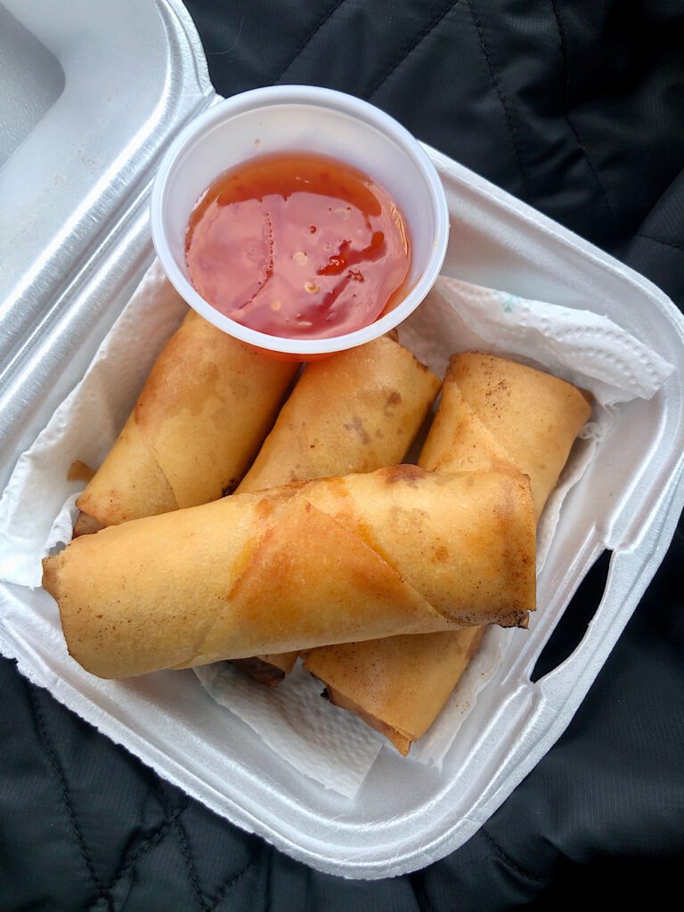 In addition to his signature egg rolls, the menu features Lao specialties like pork ribs, beef jerky, fried chicken – all with sticky rice – pho and ramen.