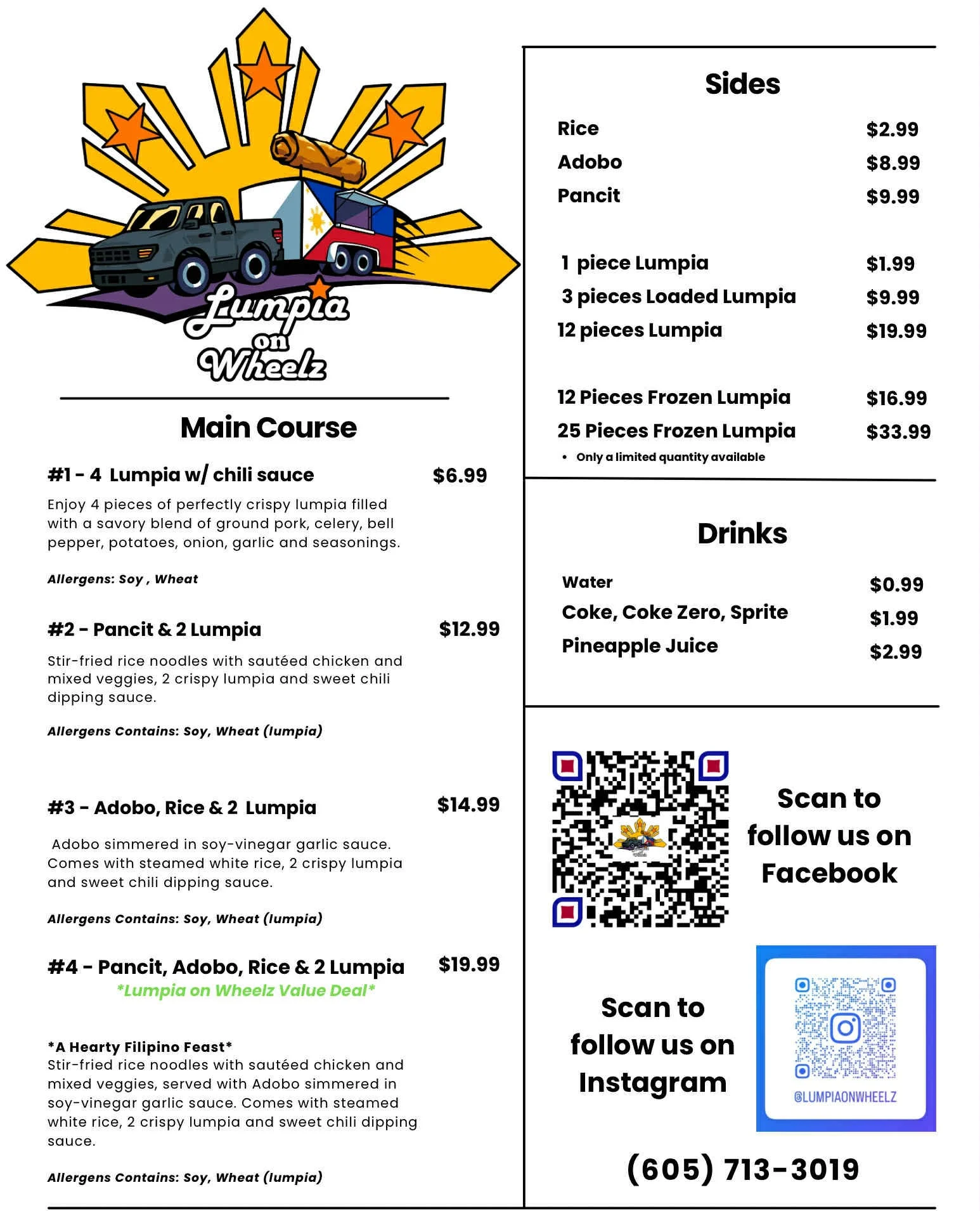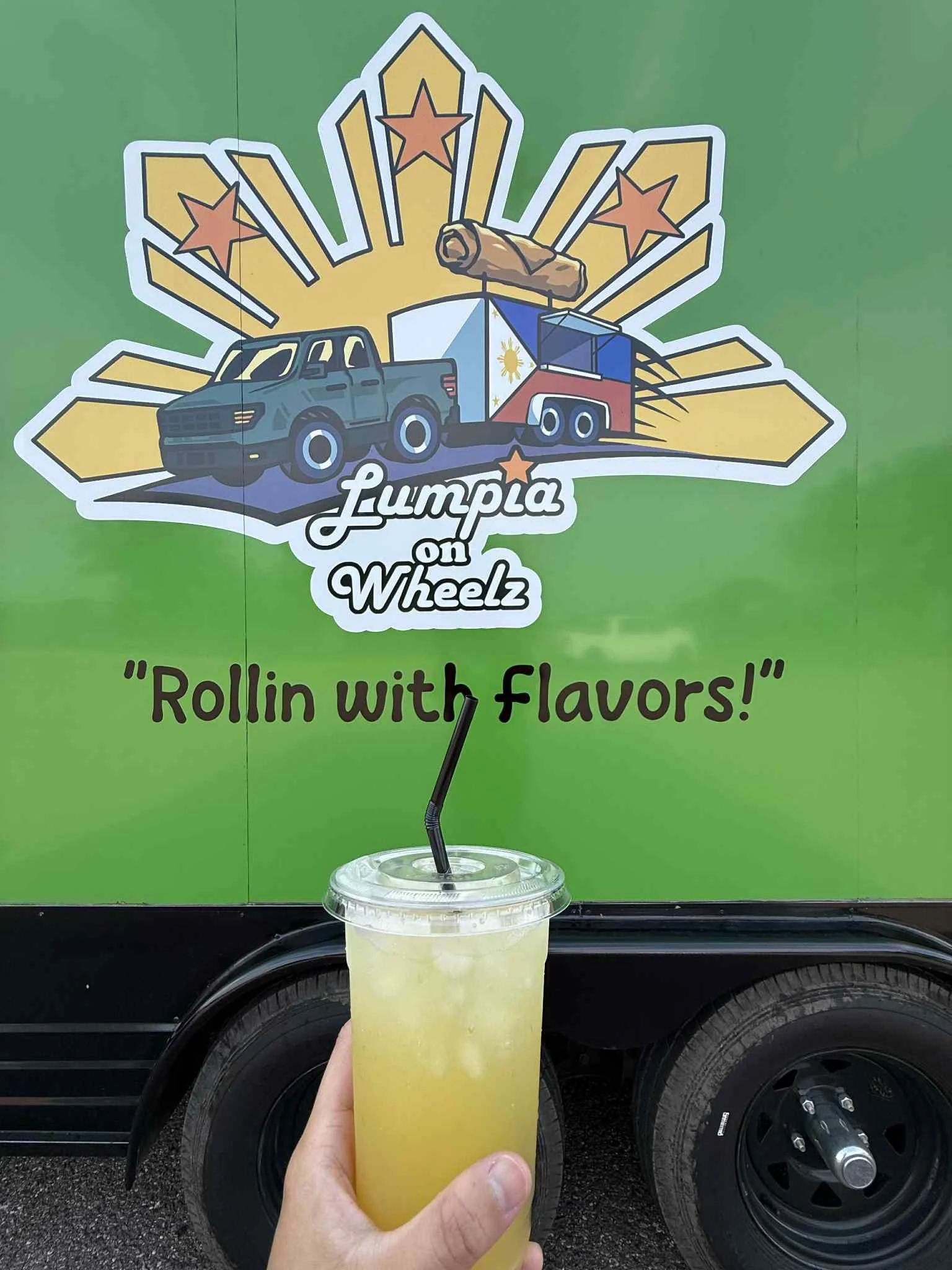 Lumpia on Wheelz sells pineapple juice, Coke products and bottled water.