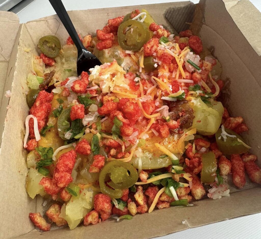 Customers can ask to have crushed Flamin’ Hot Cheetos on any menu item.