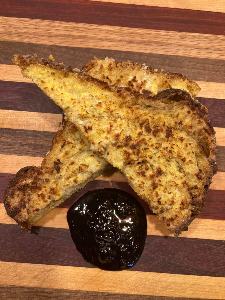 “We use cinnamon babka from Breadico, dipped in eggs from Fruit of the Coop and coated in a bread crumb-panko mix.”