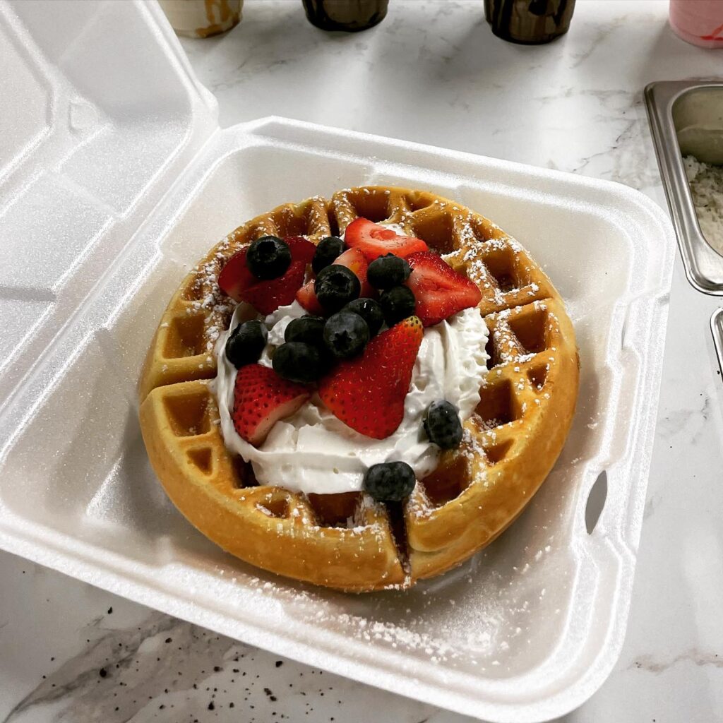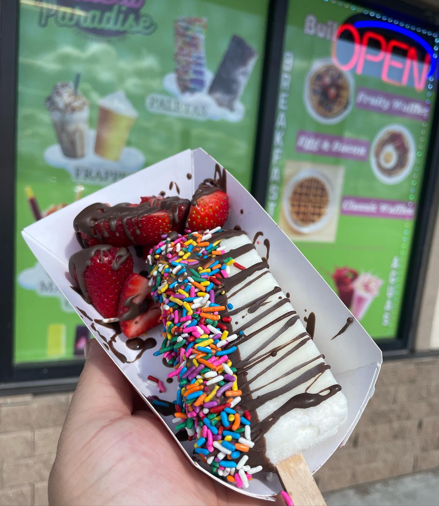 In addition, Paleta Paradise offers four versions of waffles: plain, with fresh fruit, chocolate chip and waffles with eggs and bacon baked inside.
