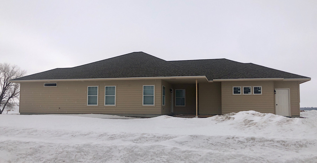 The 1,900-square-foot ranch home was built by Tschetter Construction in the Willow Ridge Addition. It has three bedrooms and two bathrooms. Features include heated floors in the living area, a fireplace, covered deck and four-stall garage.
