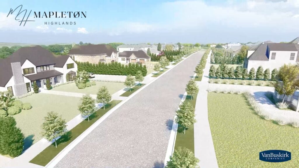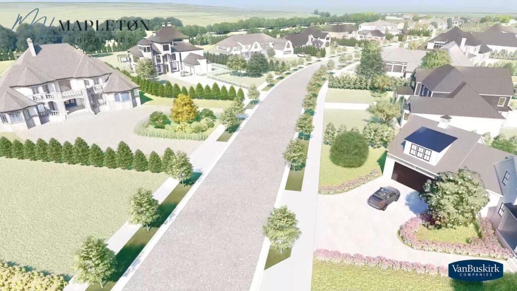 Mapleton Highlands is being developed by Van Buskirk Cos. on the northeast side of interstates 90 and 229. The site is on the west side of the private golf club and along Slip Up Creek.