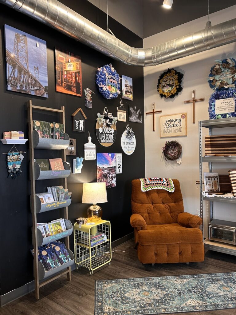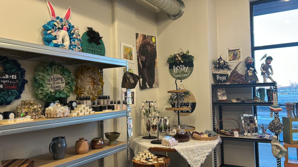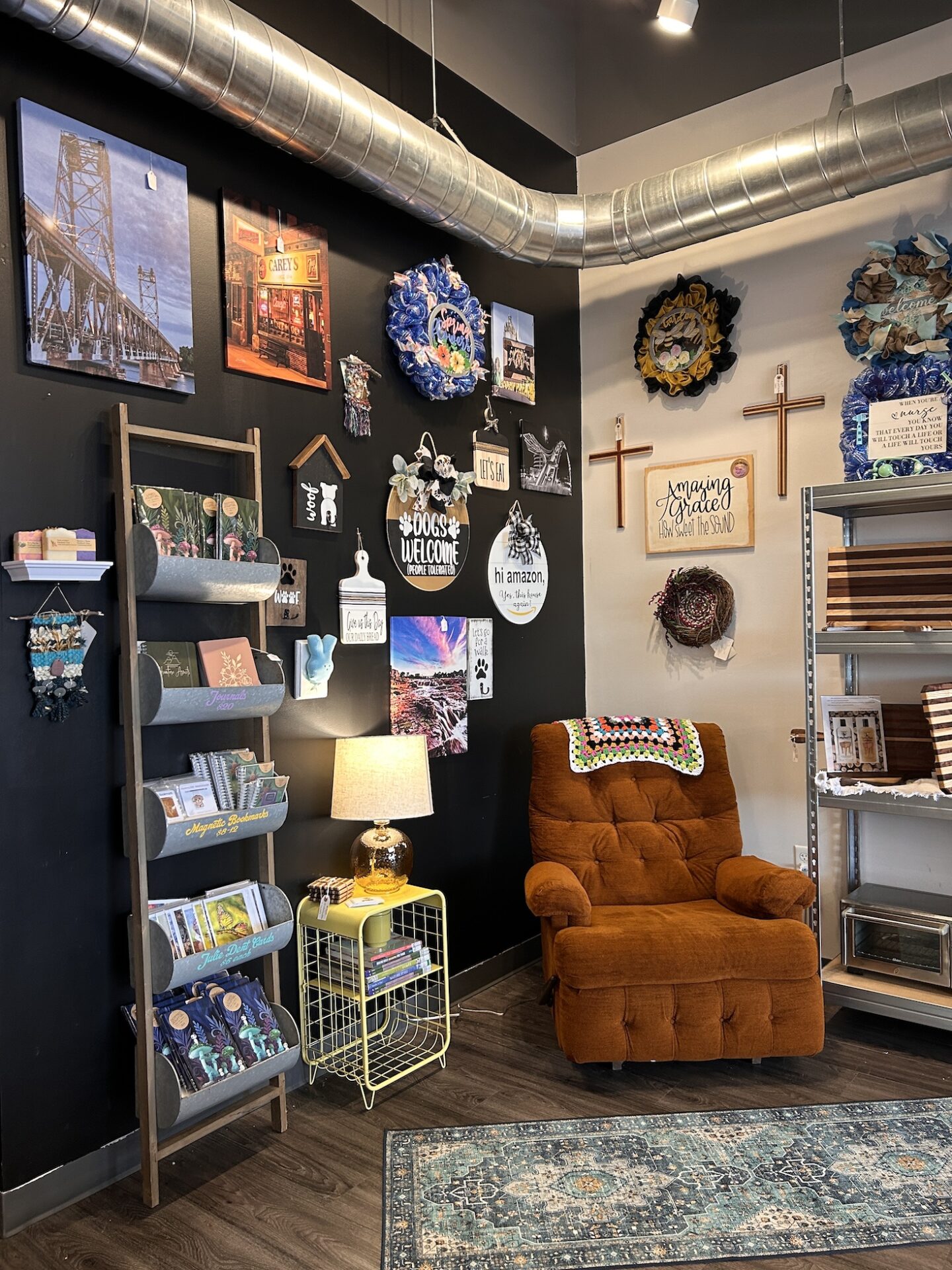 There are 22 artists represented in the store, with merchandise including jewelry, stickers, body care products, candles, wax melts, journals, engraved tumblers, wreaths, door hangers, other home decor and handbags.