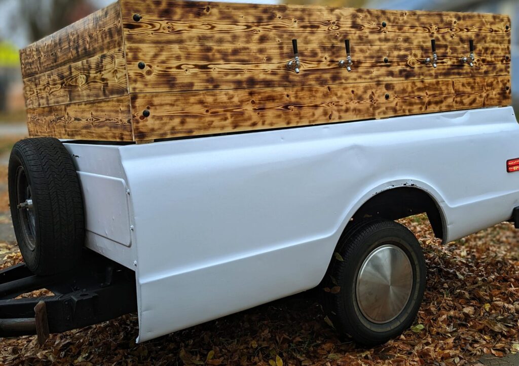 He also built a tap trailer out of the bed of a 1968 Chevy pickup. That can serve anything that comes in a keg like beer, kombucha or soda.