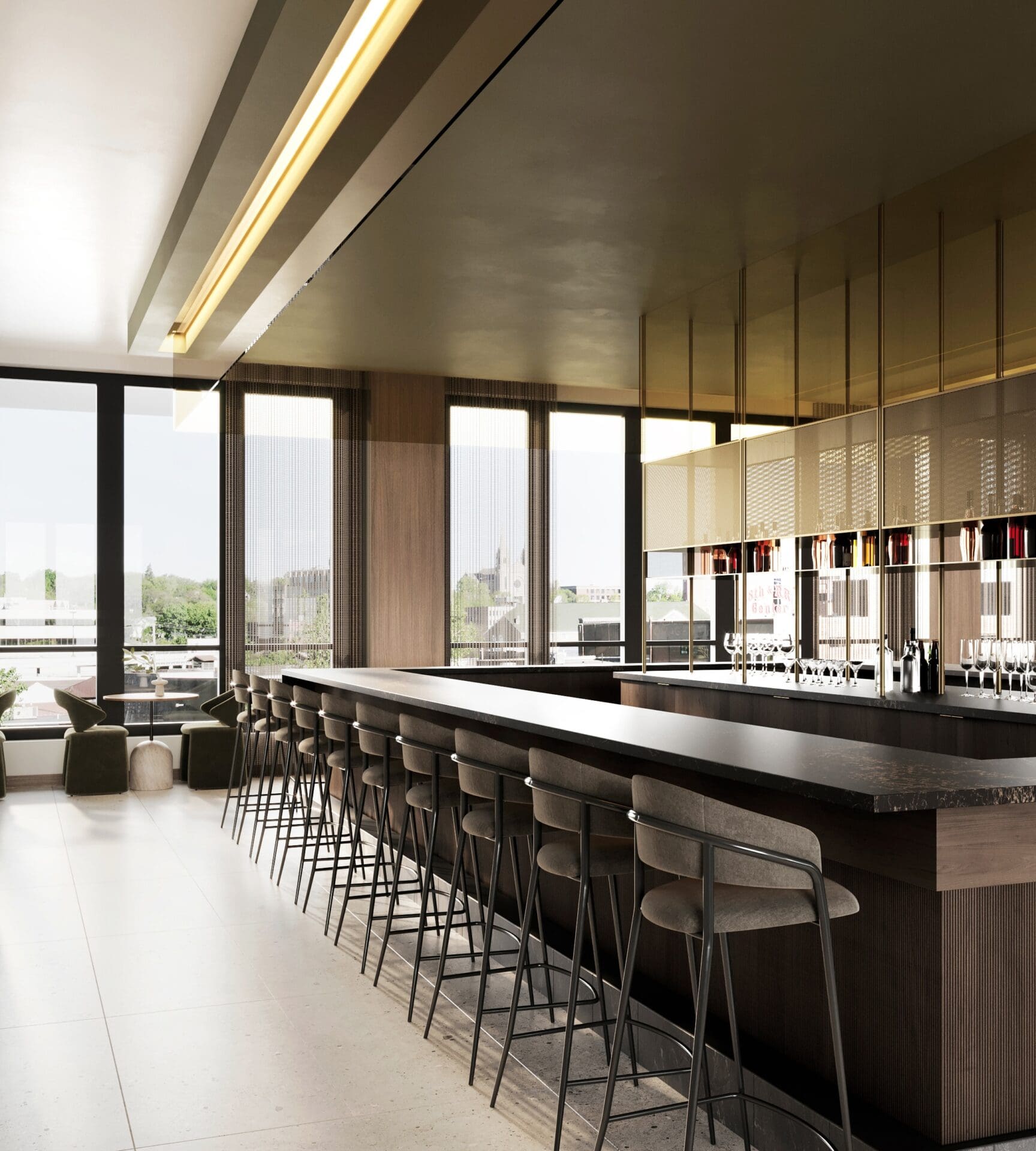 “We’re doing a large, rectangular bar that will have great views from all sides on the 10th floor — a lot of seating on the windows and glass,” Lamont said.