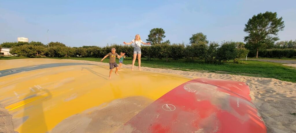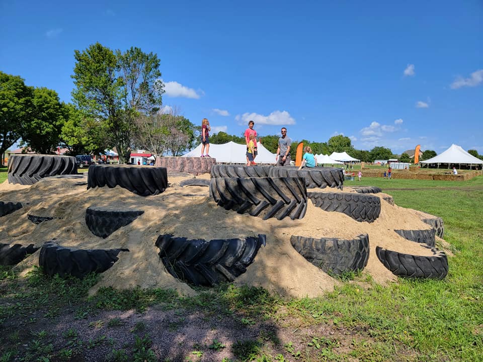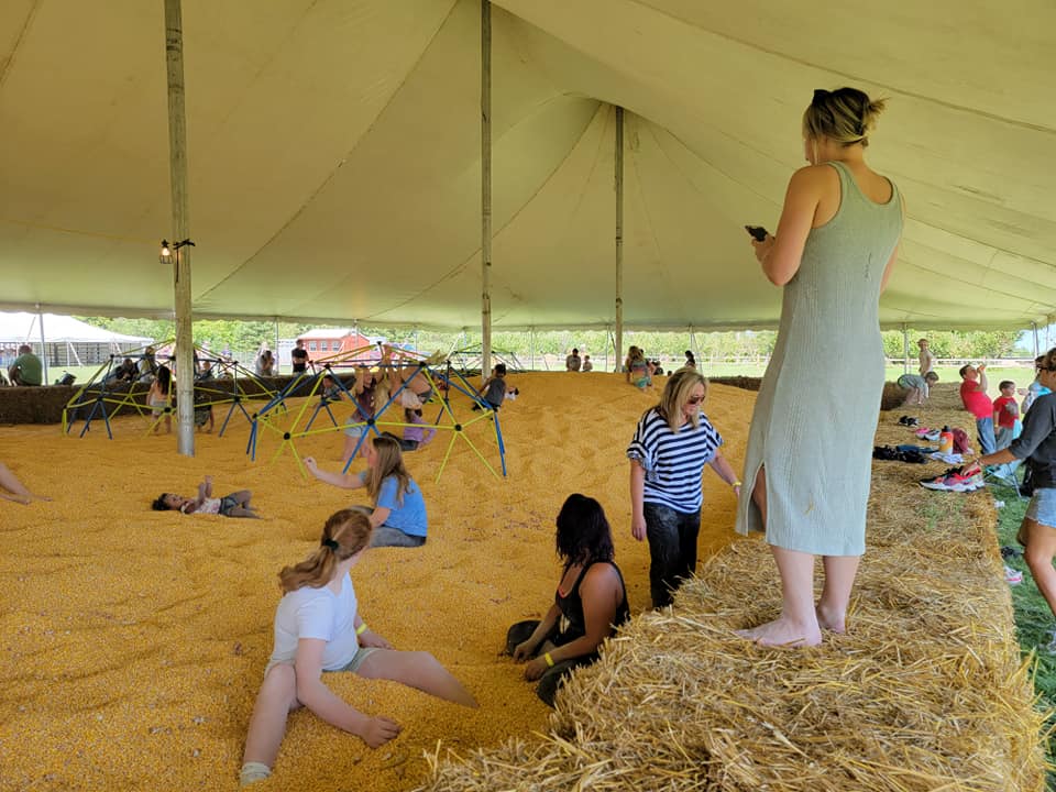 It’s a ticketed event, $13 for anyone taller than 35 inches, which includes access to a sand tire tractor mountain, three zip lines, two mega bouncy pillows, a giant corn kernel pit, two mazes and a petting zoo.