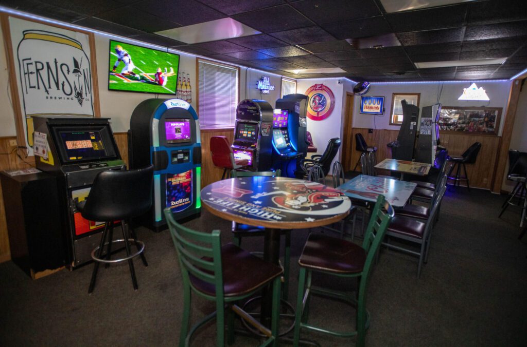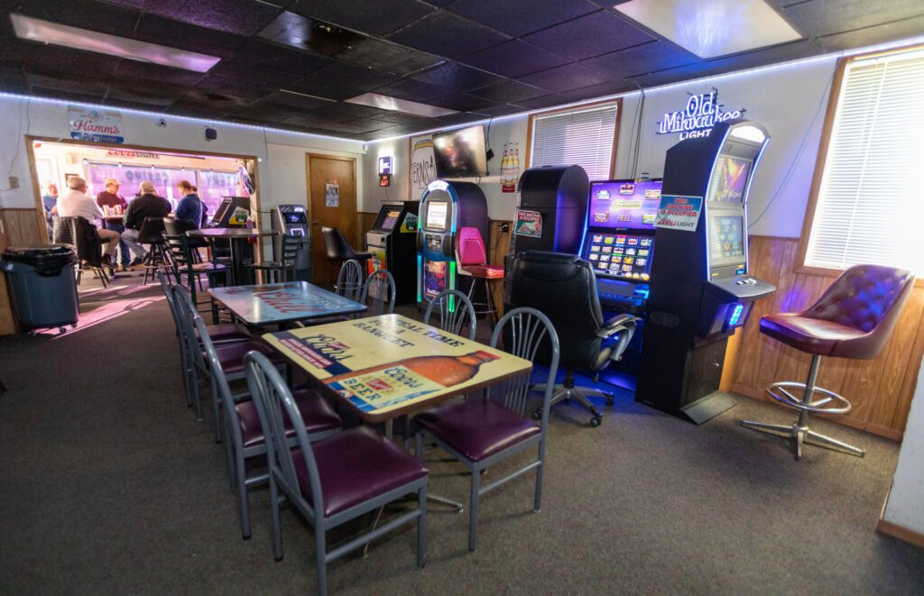 The next room is the bar, which seats about a dozen and holds a jukebox and video lottery machines.