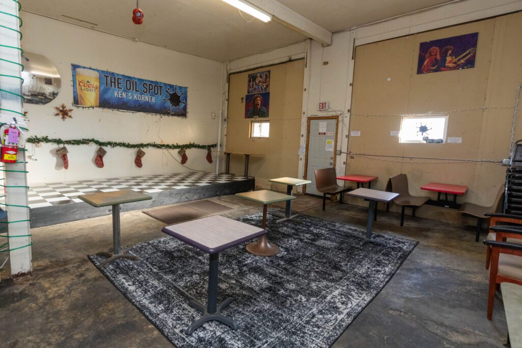 As part of a two-year plan, they’ll eventually put the garage doors back in and create a patio in front of the building. The former garage area would become the main bar area. First, though, will come repairs like redoing the flooring in the former garage area and building a parking lot in the back and a rear entrance.