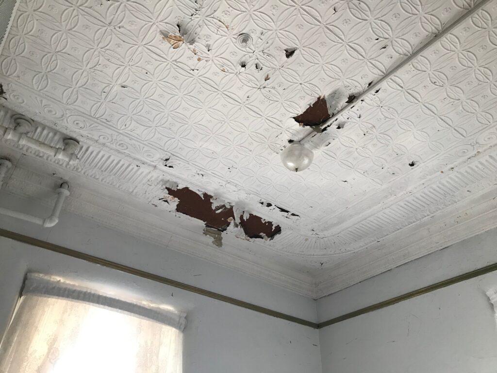 Some of the rooms have the original embossed tin ceilings. The lower level with its 9-foot ceilings and multiple large windows will provide space for two large apartments.