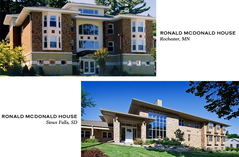 Other TSP-designed Ronald McDonald Houses include the Lake Avenue House near the Sanford Children’s campus in Sioux Falls, originally constructed as a 25,370-square-foot building with 18 bedrooms.