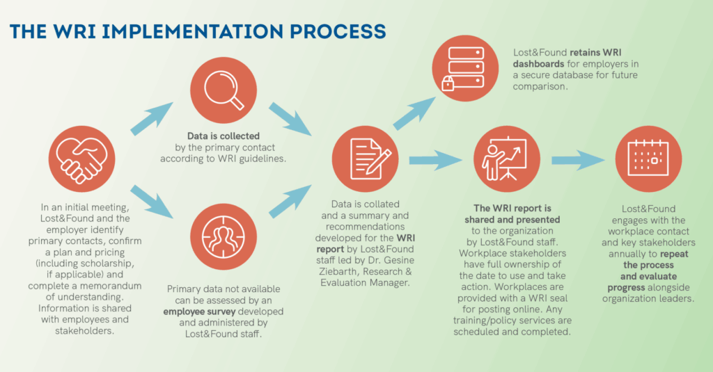 The WRI’s broad, thorough view of workplace prevention efforts can help guide decisions on investments in existing or new prevention efforts that will best serve employees. The information also helps Lost&Found better support workplace partners implementing suicide prevention programs and policies.
