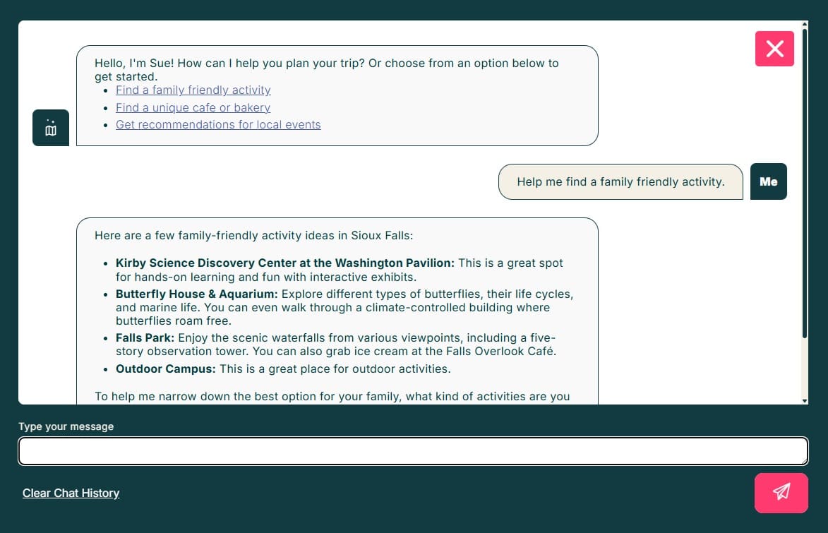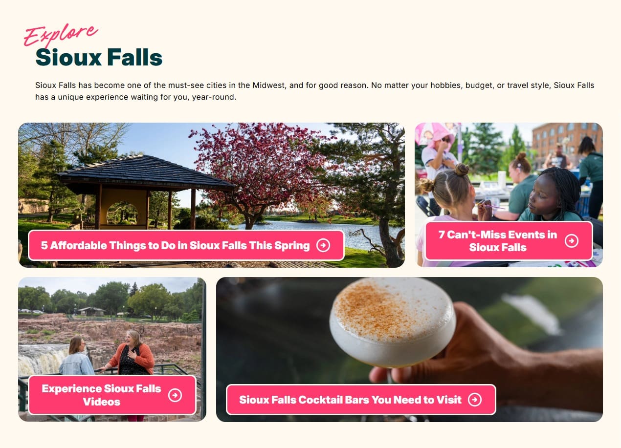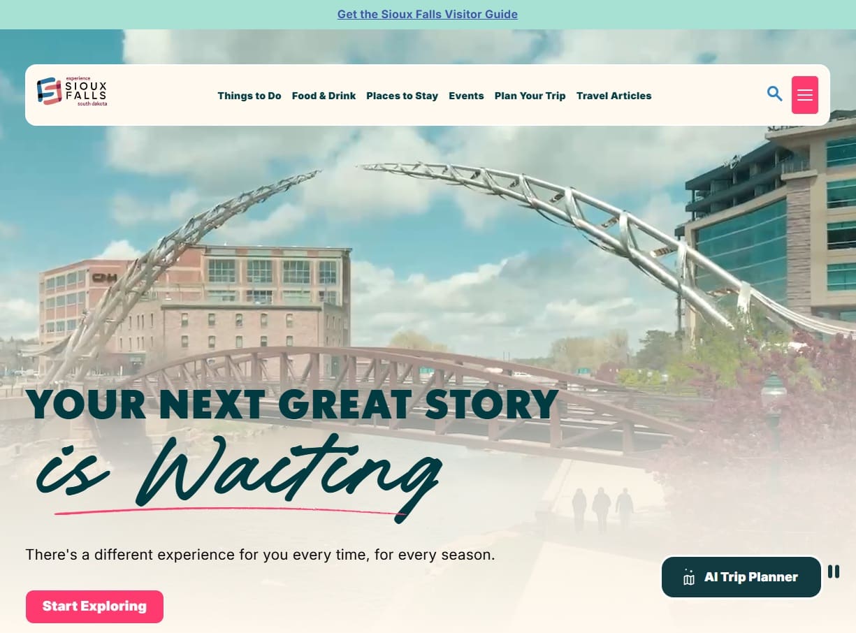 “Our goal was to capture what makes Sioux Falls fun and approachable, while making it easier for people to plan their visit. The design invites you in, and the AI Trip Planner helps guide you based on what you’re looking for,” said Bailey Wood, Click Rain director of marketing.