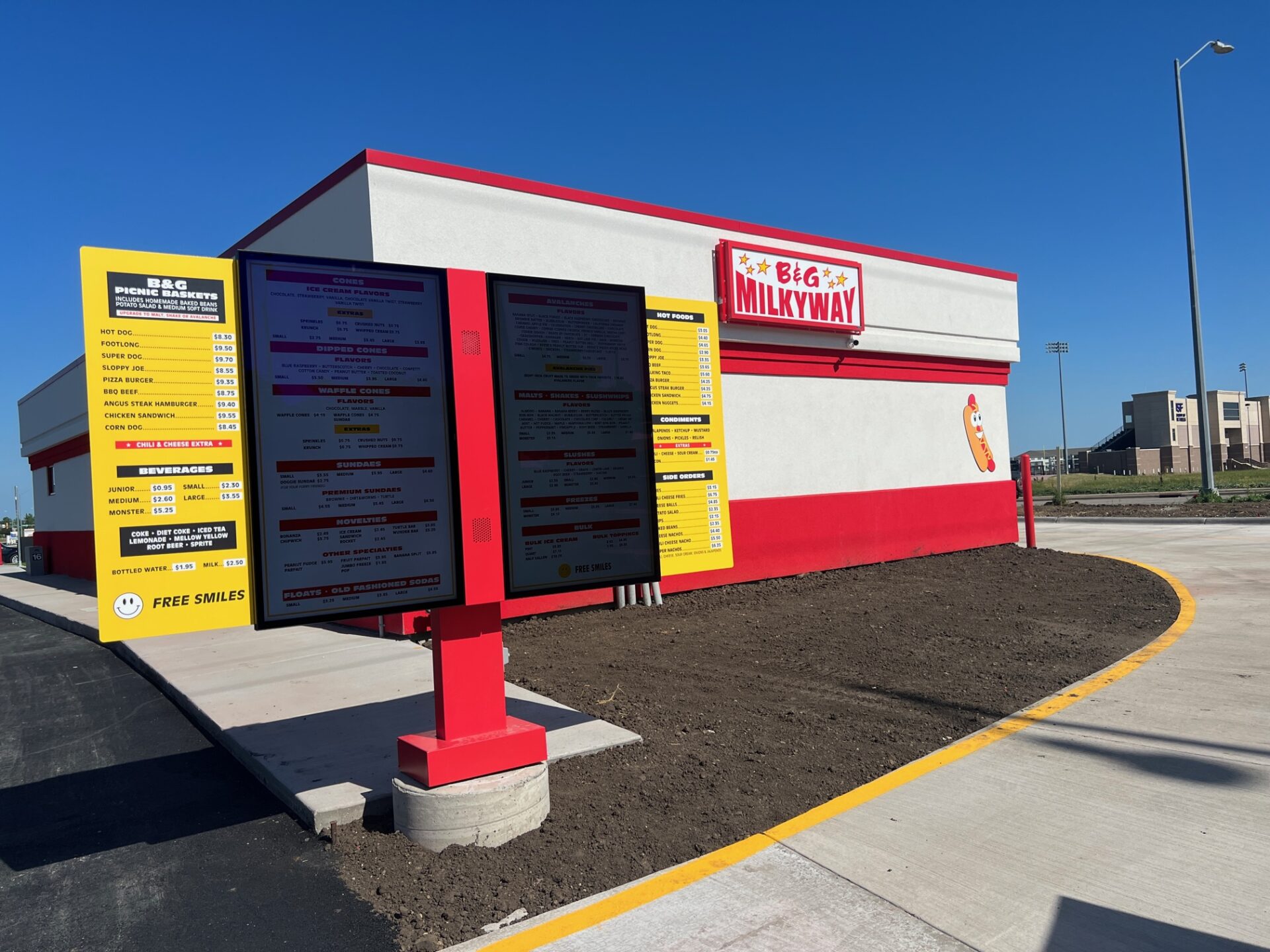 The menu will be the same as other B&G Milkyway locations, offering a range of ice cream and frozen treats, hot dogs, sloppy joes, burgers and chicken — plus basket options with homemade baked beans and potato salad.