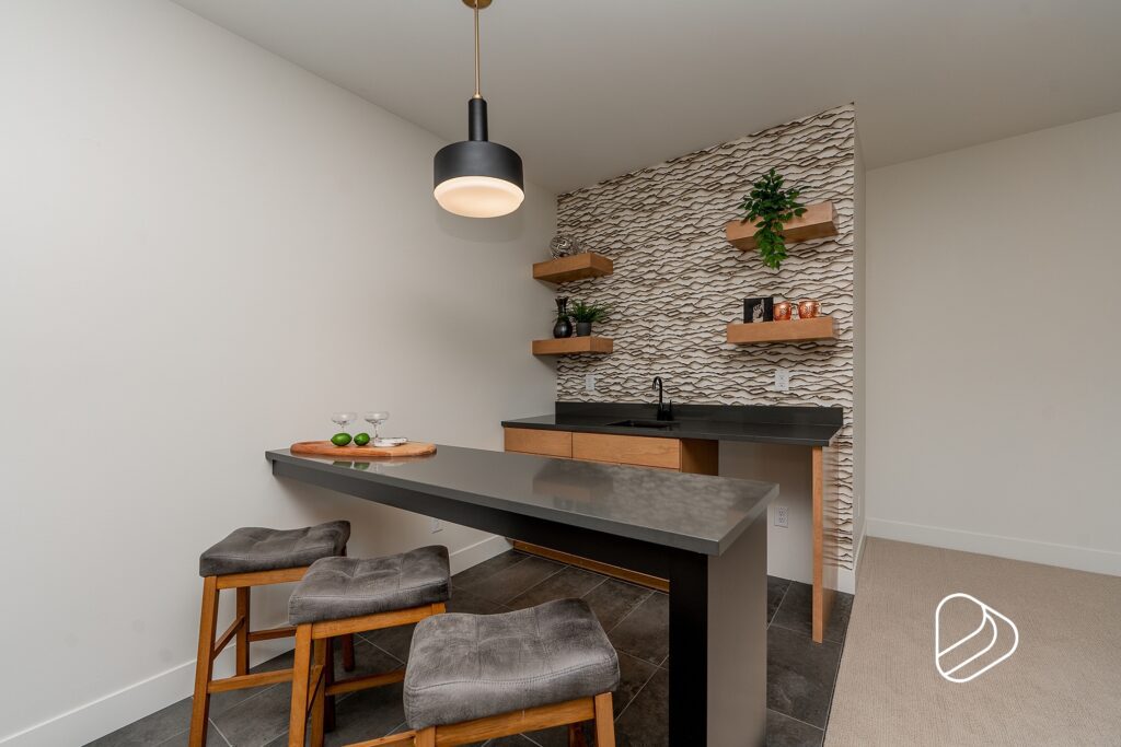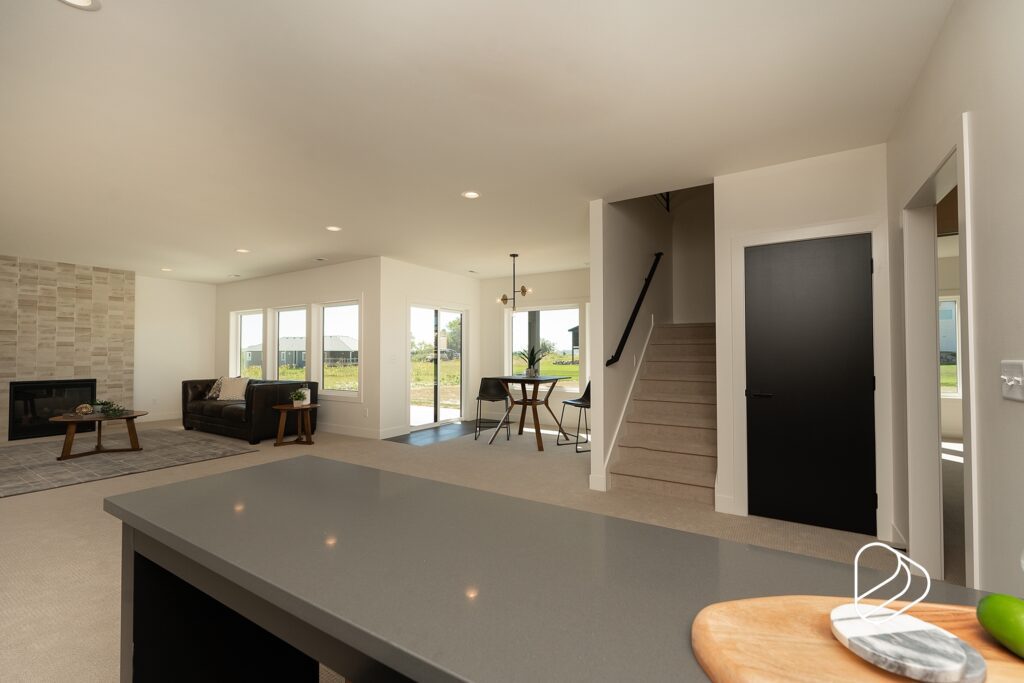 “The design of the home draws in lots of natural light, and the main-floor living space includes a fireplace and walks out to a covered deck,” Shelton said.