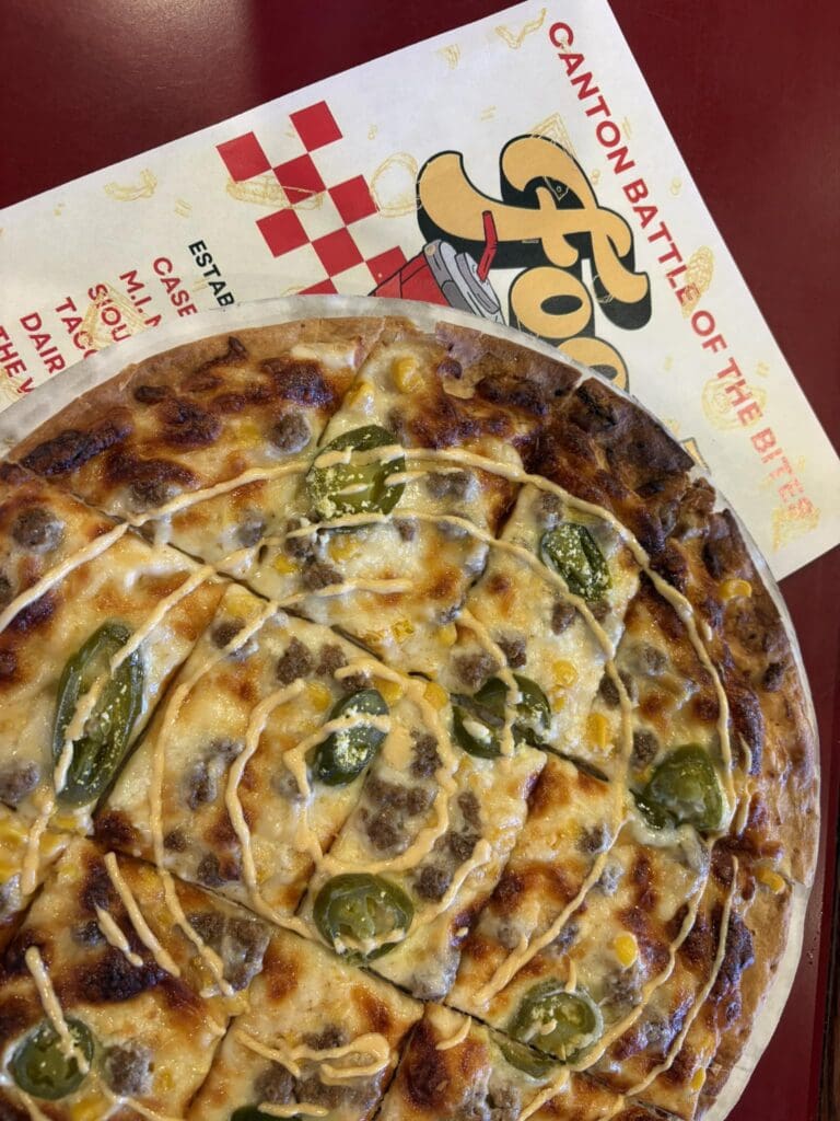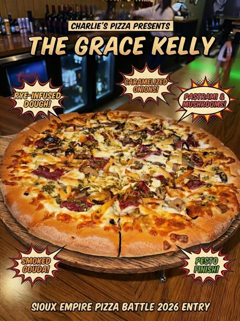 Charlie’s Pizza House was last year’s winner with the Judy Garland, which had alfredo sauce, spinach, bacon, chicken, roma tomatoes and garlic, finished with Parmesan and sweet balsamic glaze. This year’s entry is the Grace Kelly, which features pastrami and mushrooms.