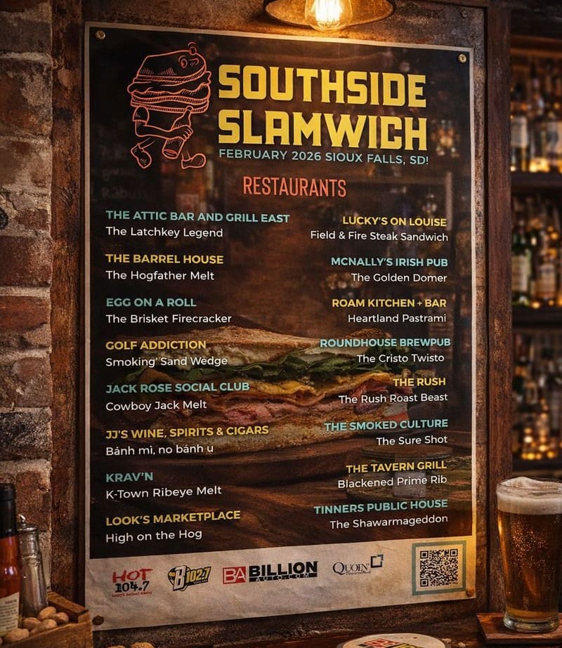 This year’s lineup includes The Attic East Bar & Grill, The Barrel House, Egg on a Roll, Golf Addiction, south-side Jack Rose Social Club, JJ’s Bar, Krav’n, Look’s Marketplace, Lucky’s on Louise, McNally’s Irish Pub, Roam Kitchen + Bar, Roundhouse Brew Pub, The Rush Bar & Grill, The Smoked Culture, The Tavern Grill and Tinners Public House.
