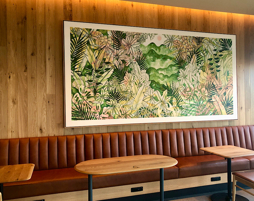 In addition to the drive-thru, conveniences for mobile ordering include a couple of designated parking spots and a pickup spot on the counter inside.