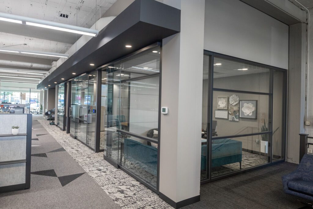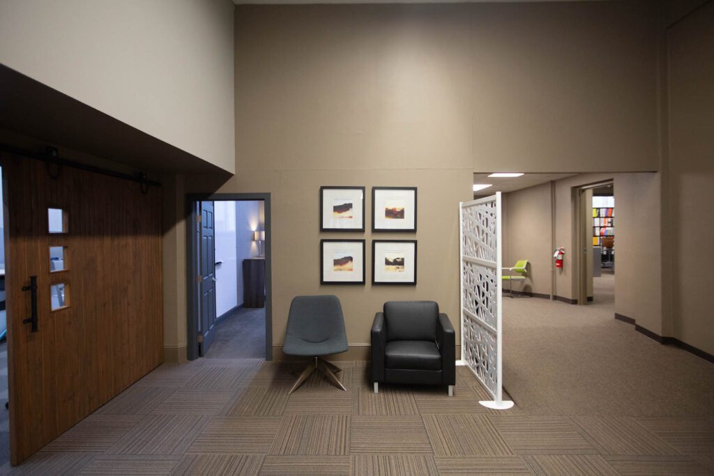 “But we’d never done a cohesive overhaul of the inside,” Christensen said. “It’s a showroom as well as an office, so we were always painting or replacing flooring, but we never took a holistic look at it. This flipped it upside down, so we started over with almost everything.”