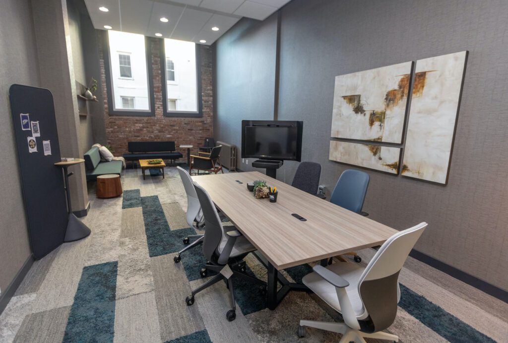 Technology supports both in-person and remote meetings through an efficient videoconference setup.