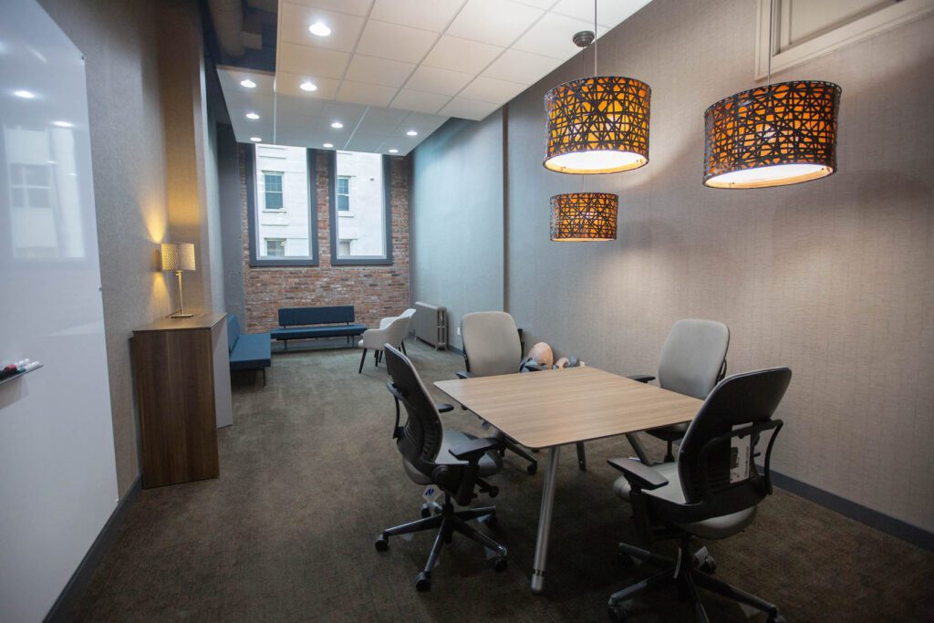 While there are pieces in the office that serve the purpose of a showroom, too, “our spaces are functional,” James Gaspar added. “They’re not just there for show. There’s always access to power or a table, so you can work there effectively.”