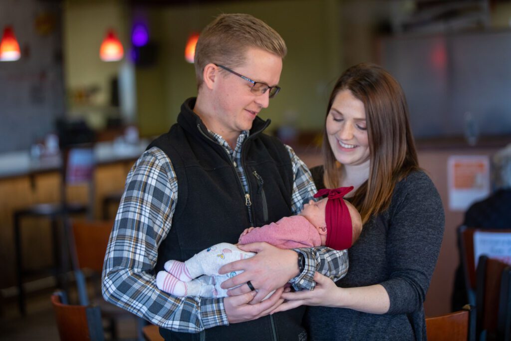 He and his wife, Haley, were able to bring their new daughter, Tatum, to see Haley’s family in Northern California before returning to Sioux Falls for the holiday visit with Dillion’s family. In the first few weeks after Tatum’s birth, Haley and Dillion took turns watching the baby while the two of them eased into an understanding of their new roommate’s habits and sleep patterns.