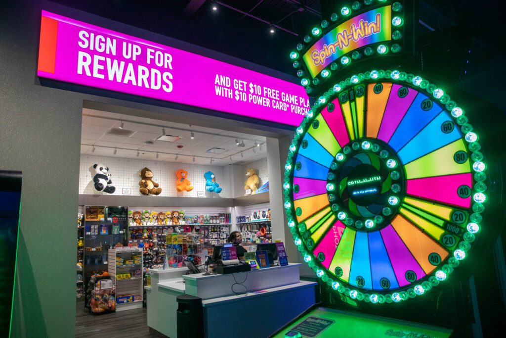 Games: There are 88 games with 120 player stations, as some are multiplayer games. There are two types of games: those you play to win tickets and redeem for prizes, and those that offer some kind of experience such as driving, racing or shooting.