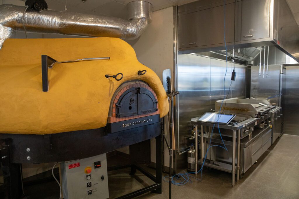 The kitchen also is much larger than Papa Woody’s previous home. It’s not a completely open kitchen like before, but customers still can catch a glimpse of the wood-fired pizza oven — originally from France — which made the move down Phillips Avenue on a forklift a couple of weeks ago. Its rotating deck can hold up to 20 large pizzas.