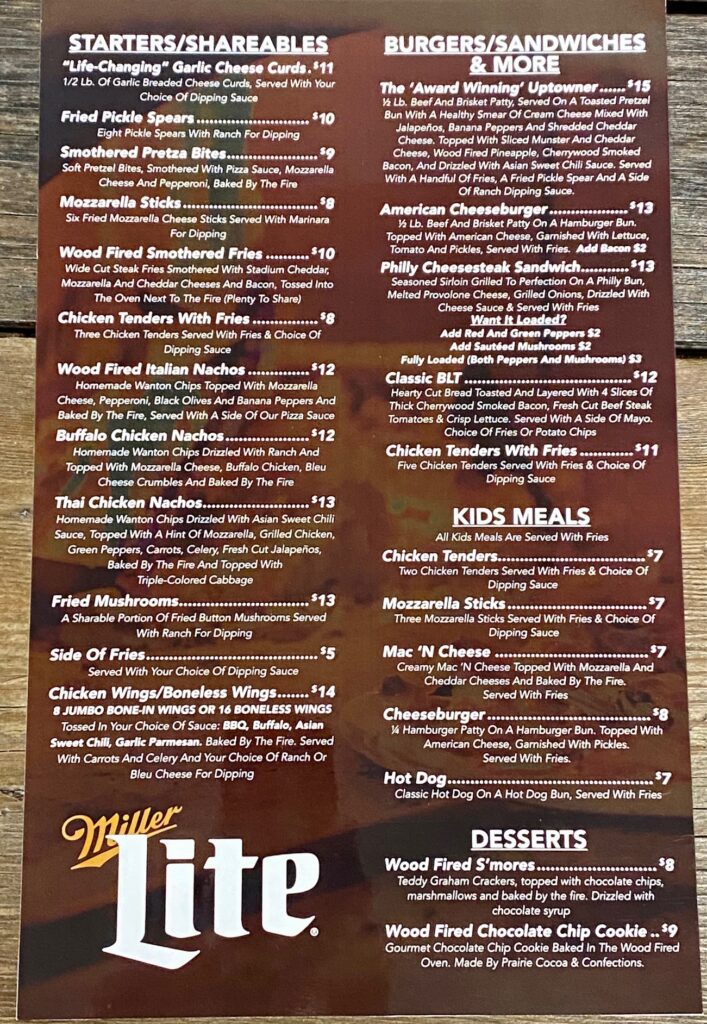 The wood-fired pizzas, which come in two sizes with three crust choices and three gluten-free or vegan crust options, will continue to be the highlight of the menu, but there are plenty of appetizers, burgers, sandwiches and options for the kids.