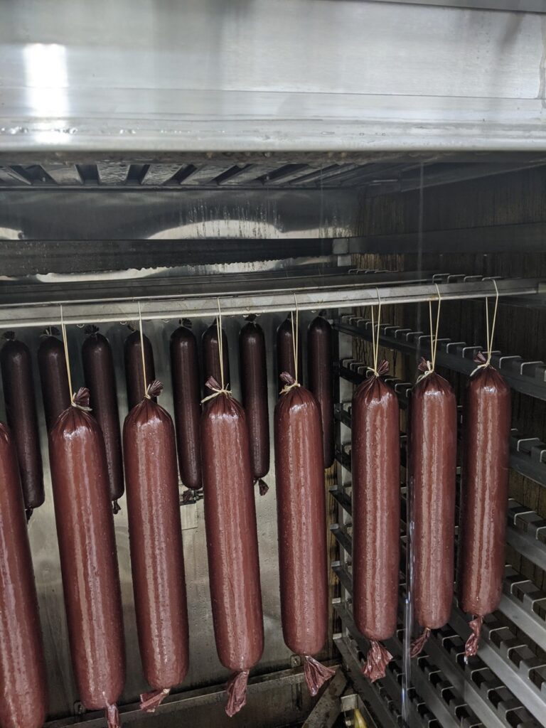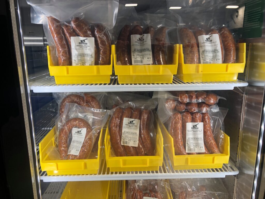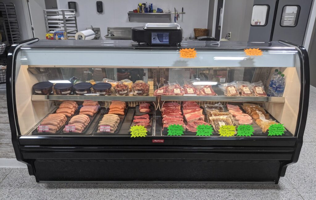 Creekside’s refrigerated and freezer cases are filled with other items such as the beef sticks, ring bologna and smoked brats that are made on-site, grass-fed beef, chicken grillers and larger packages of chicken strips.