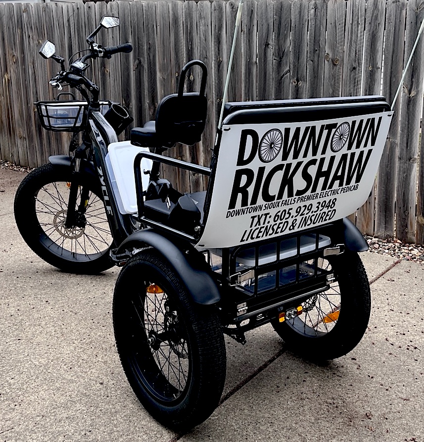Scott Ehrisman has started Downtown Rickshaw, using an electric trike that accommodates two passengers.