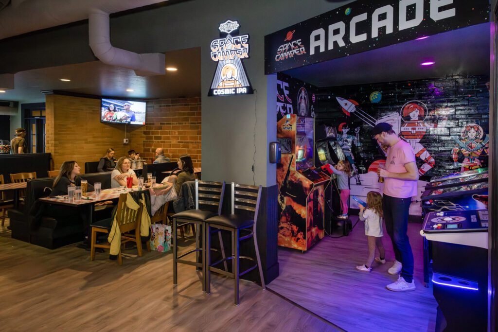 The family-friendly restaurant offers an arcade with retro video games, pinball machines and Golden Tee, and there are TVs for watching sports. Pizza Cheeks seats about 100 customers at tables, a few booths and at the bar.