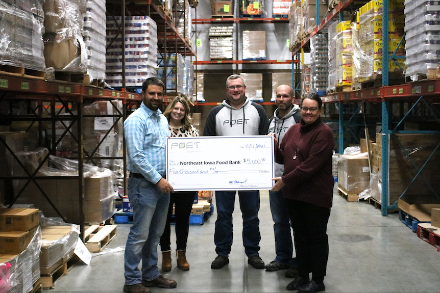 POET’s facilities in Shell Rock and Fairbank, Iowa, came together to make a $5,000 donation to the Northeast Iowa Food Bank. The Food Bank provides nutritious food and grocery products to nonprofit organizations and individuals while offering hunger education programs in the area.
