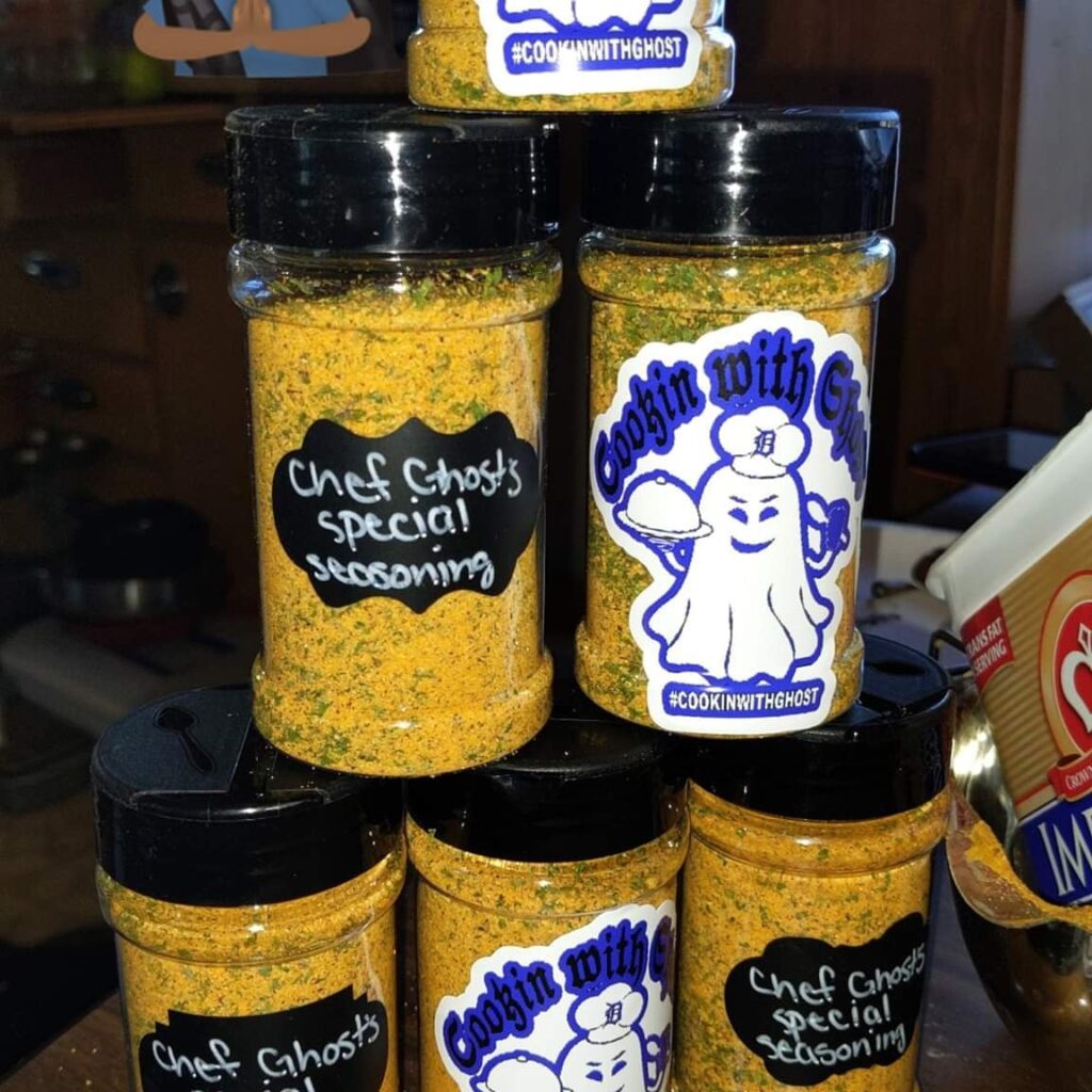 He also sells his custom seasoning mixes, describing one as all-purpose and the other for barbecue.