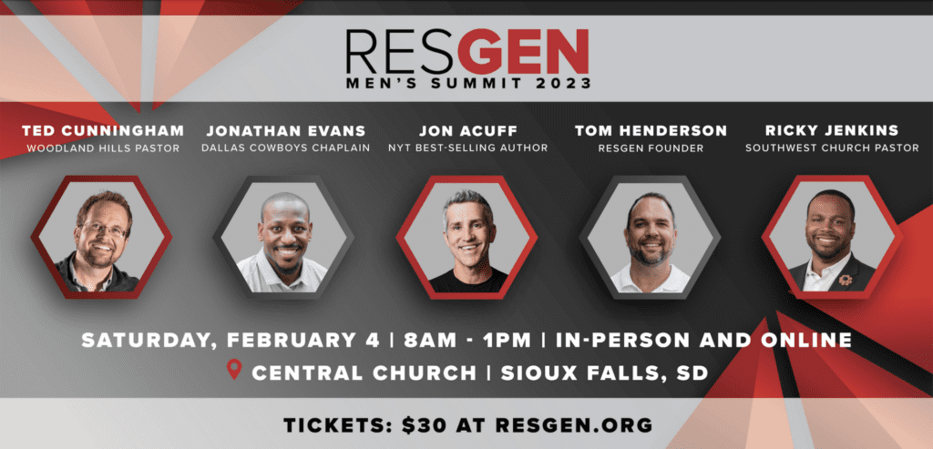 The seventh annual RESGEN Men’s Summit is a half-day conference that encourages men 18 and older to grow and fulfill their purpose as leaders, husbands, fathers and Christ followers.